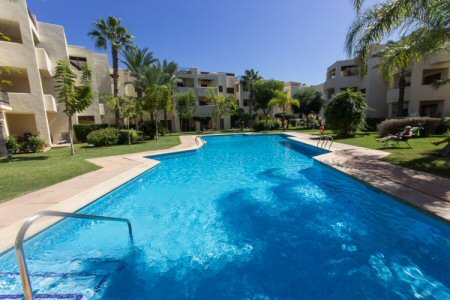 The garden area is bathed in sunshine for the vast majority of the day and the large swimming pool is just a few steps away.
